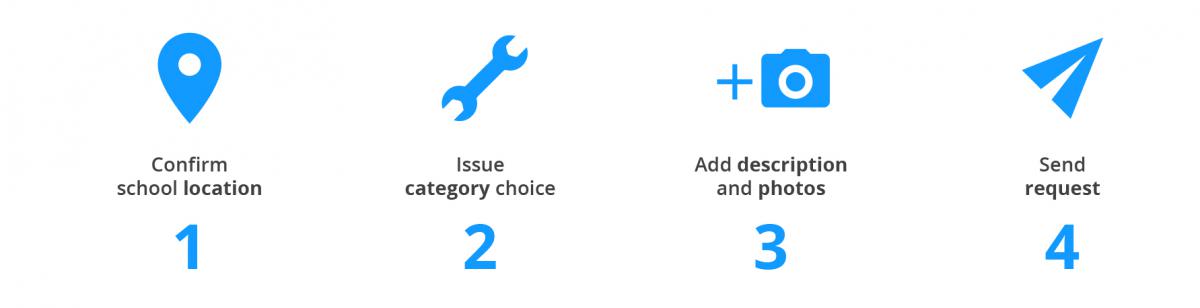 The users (Associations of Parents & Guardians) can request solving problems of wear, maintenance, cleaning of school buildings and the surrounding area, as well as operational problems, shortages, safe access to school facilities, and more.