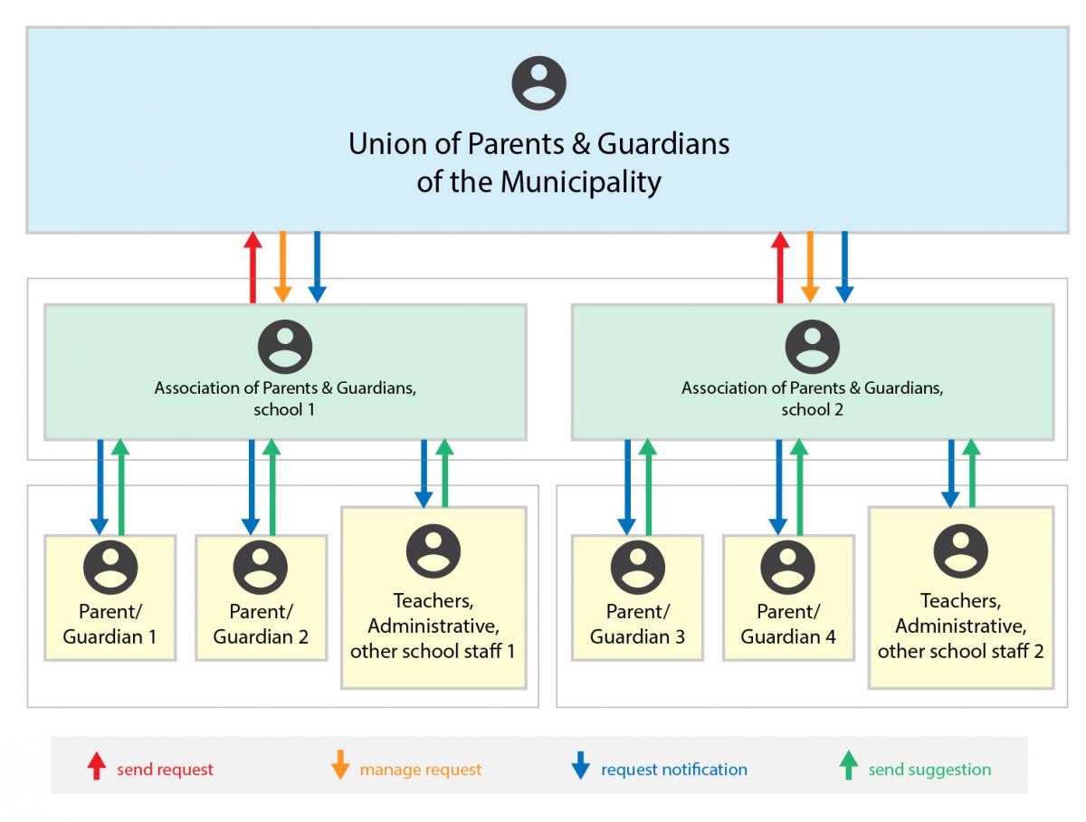 Associations of Parents & Guardians in cooperation with the school's management and staff, send their requests to the Union of the Municipality for problems they encounter in their daily school life, which they cannot resolve on their own within the limits of their role, planning or budget.